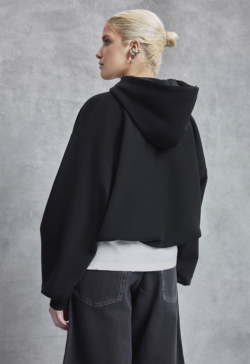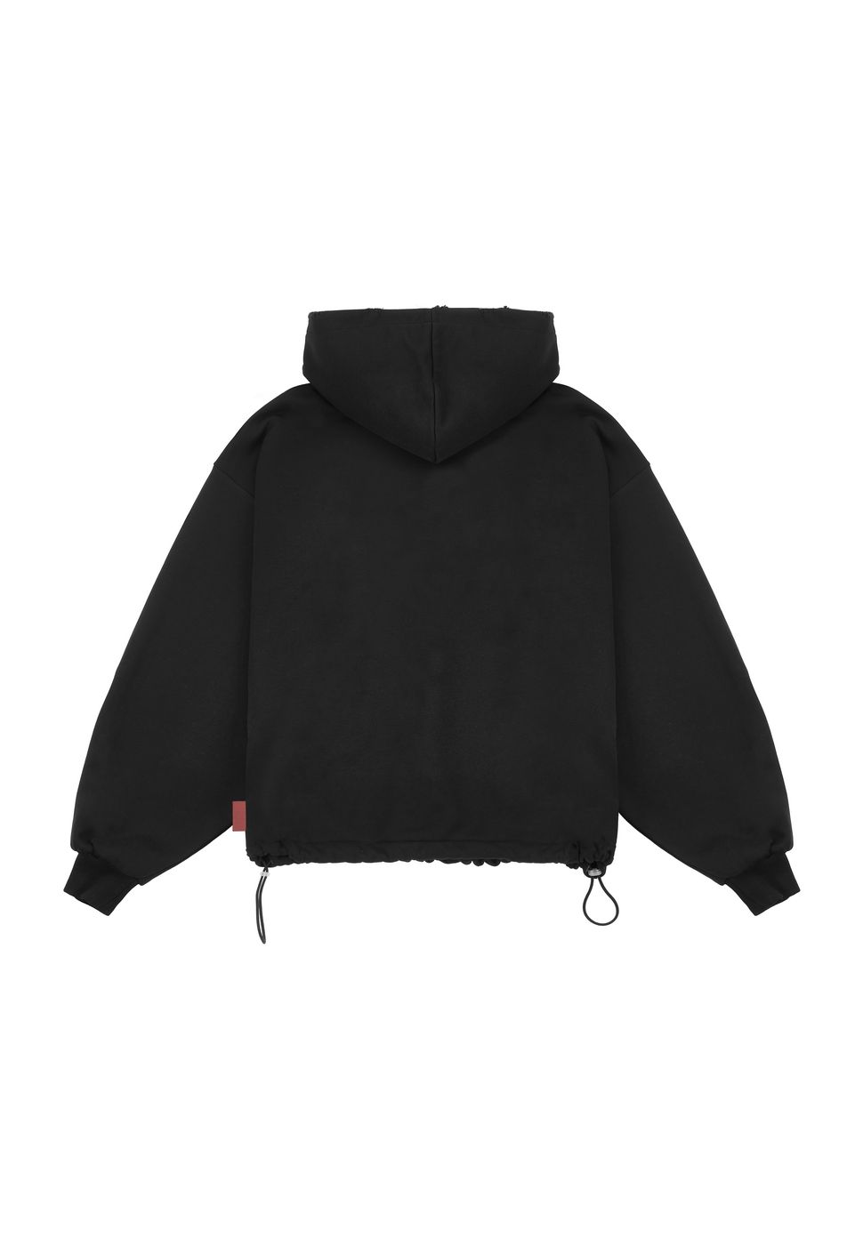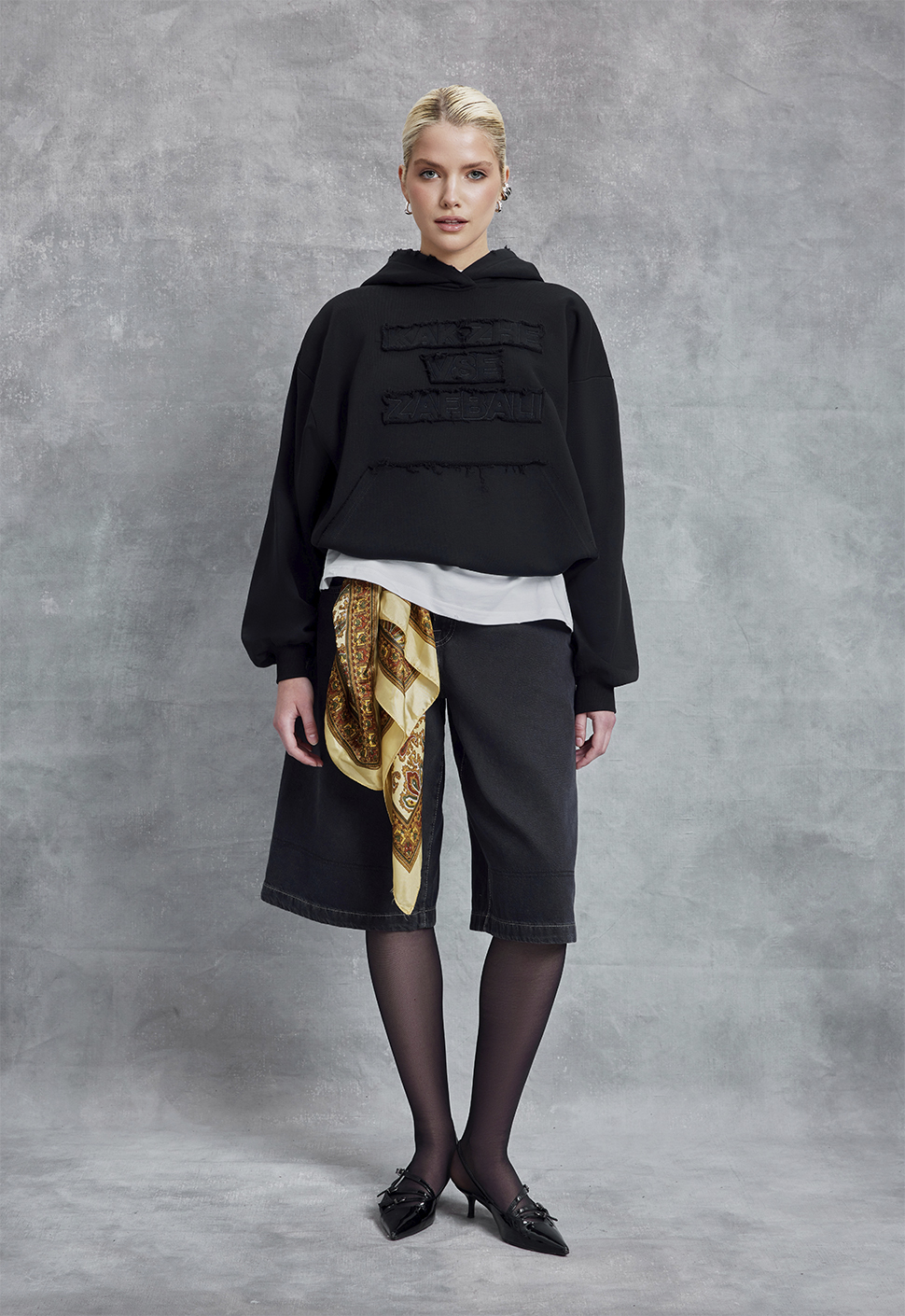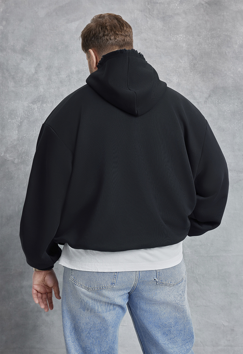 Черное худи от Приятного Ильдара "Kak zhe Vse za*bali" oversize кроя выполнен из высококачественного плотного хлопка плотностью 320 гр/м2 с бархатным эффектом. Нанесение сделано машинной вышивкой, также в изделии присутствуют декоративные потертости и регуляторы внизу для изменения объема