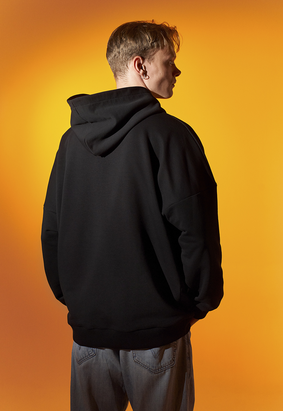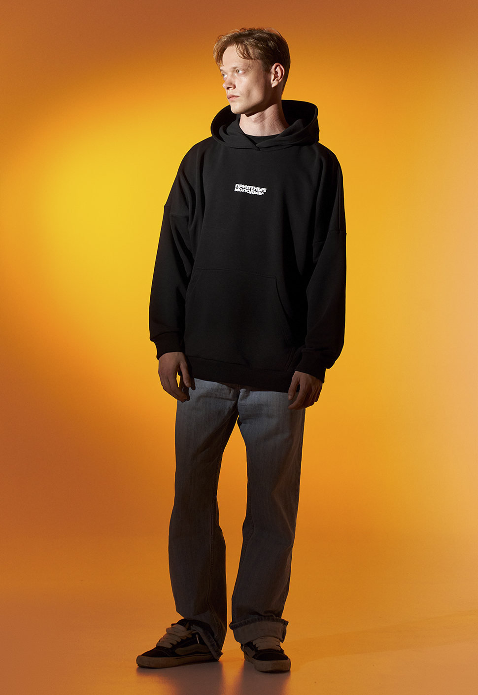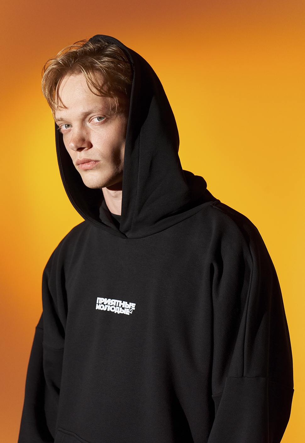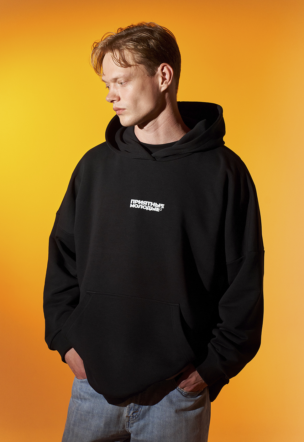 Черное худи от Приятного Ильдара "Приятные Молодые" oversize кроя выполнен из высококачественного плотного хлопка плотностью 320 гр/м2 .
