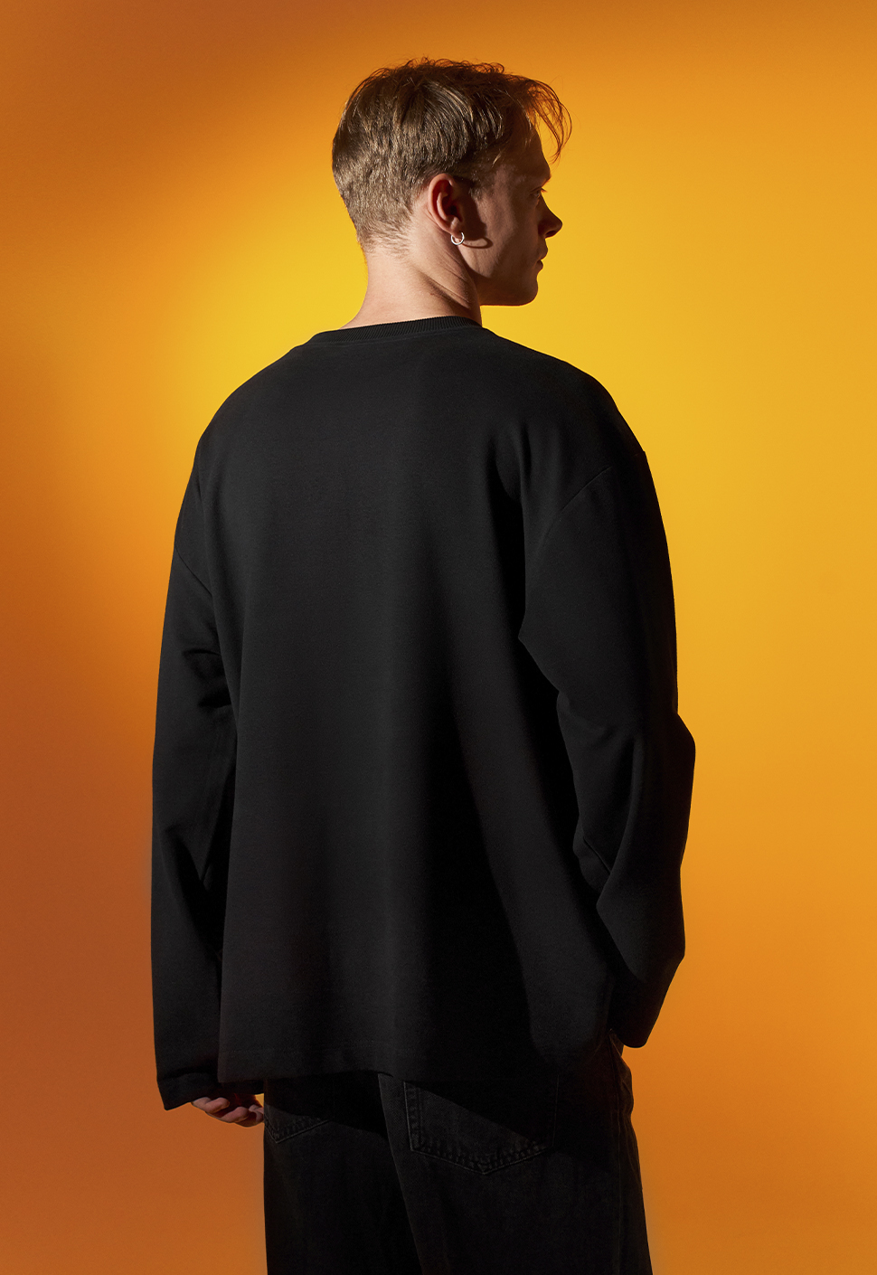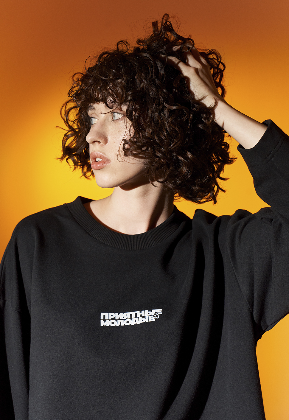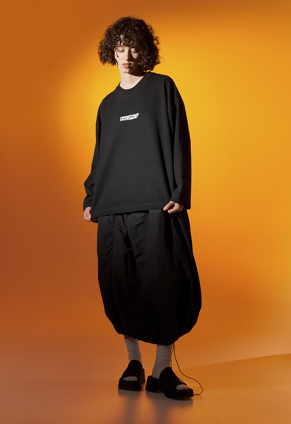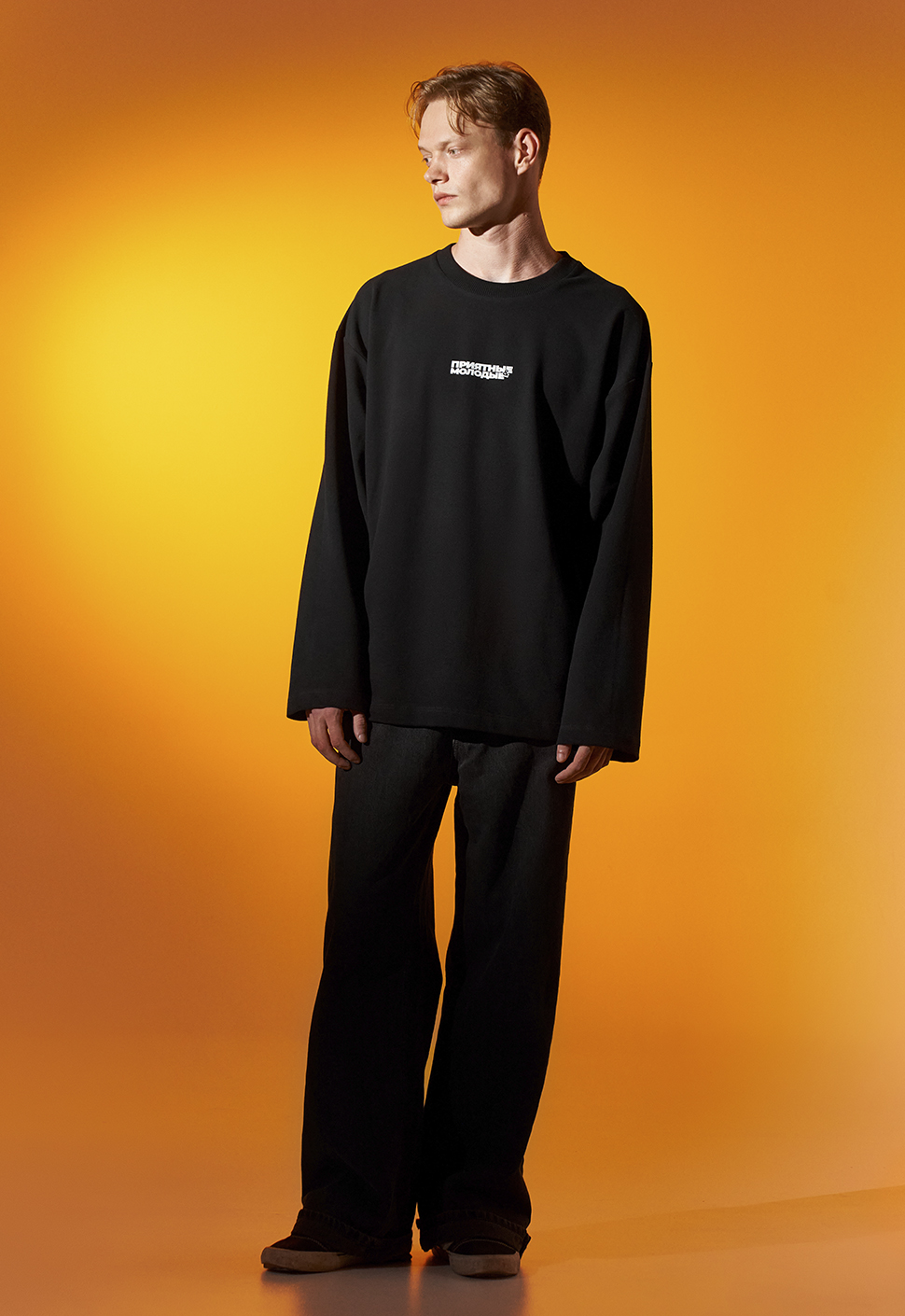 Черный лонгслив от Приятного Ильдара "Приятные Молодые" oversize кроя выполнен из высококачественного плотного хлопка плотностью 240 гр/м2 .