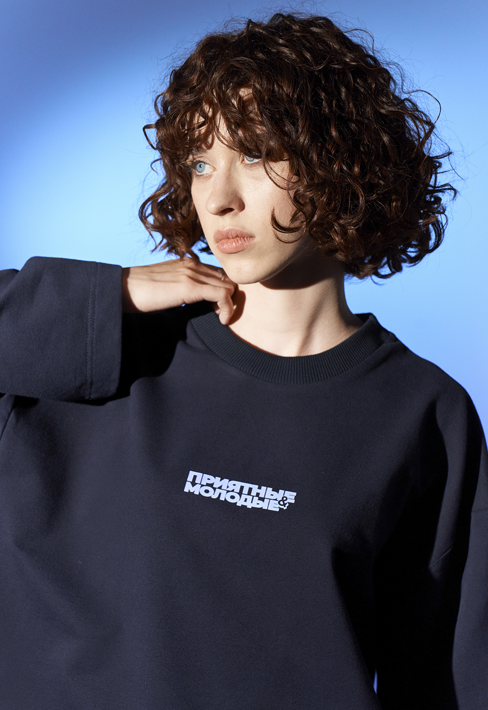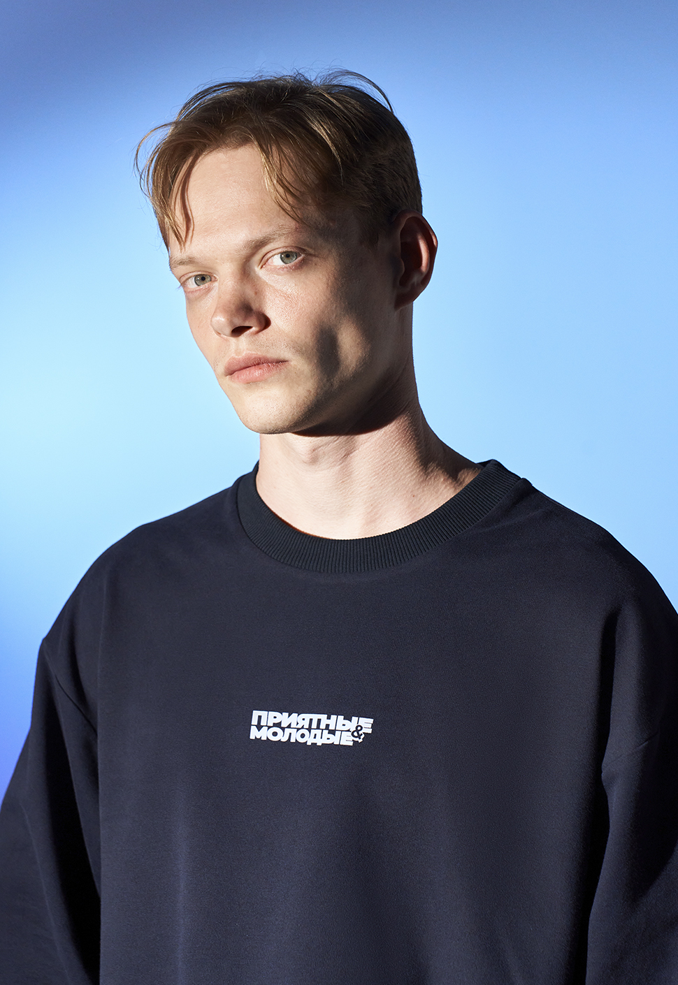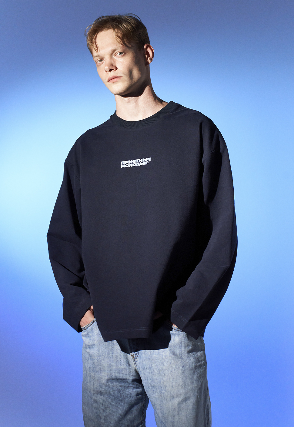Темно-синий лонгслив от Приятного Ильдара "Приятные Молодые" oversize кроя выполнен из высококачественного плотного хлопка плотностью 240 гр/м2 .