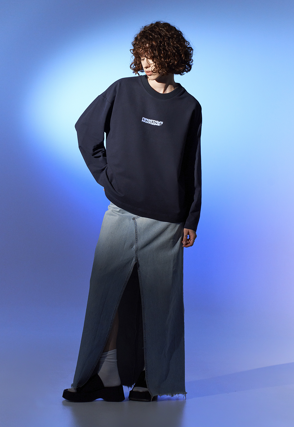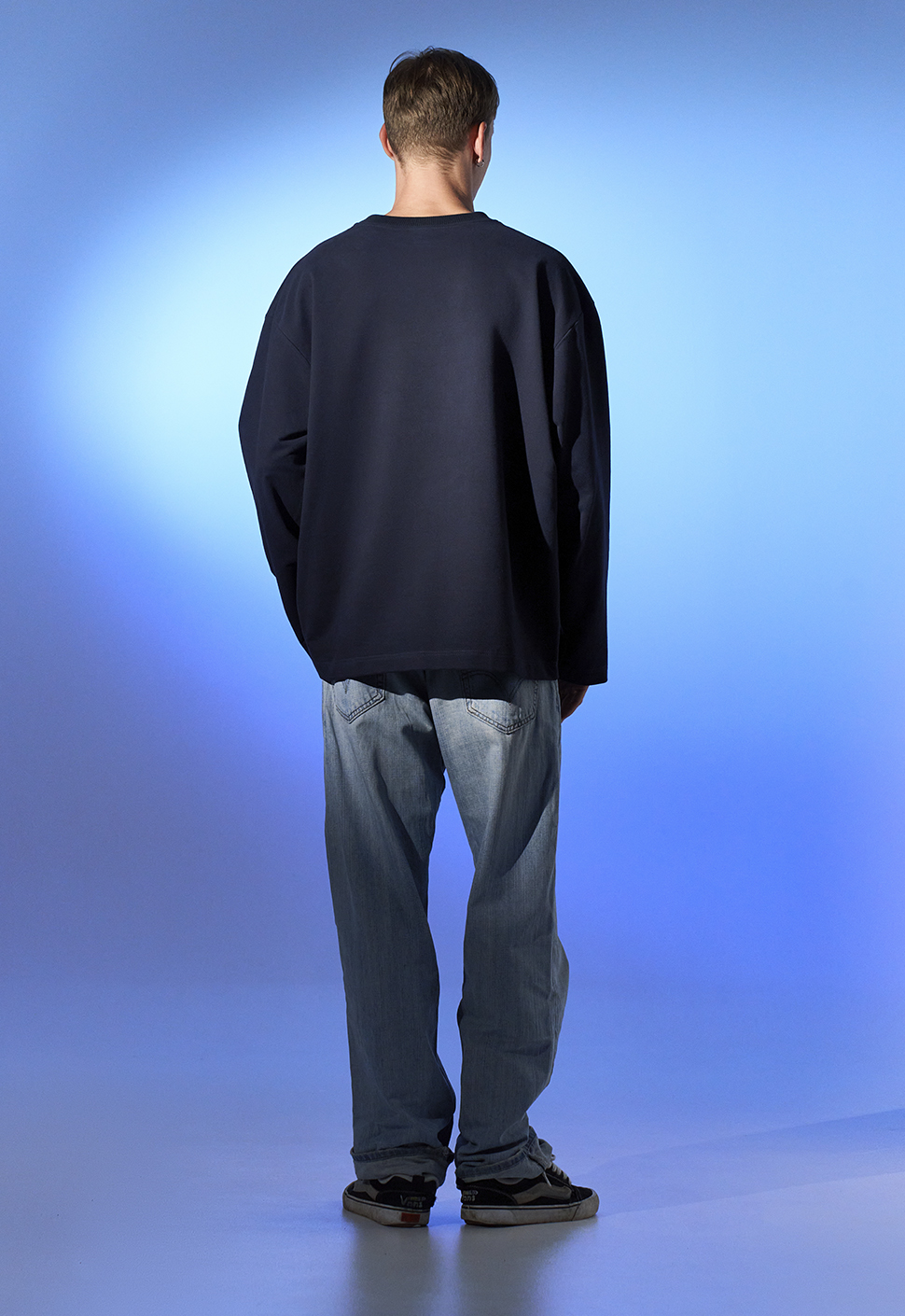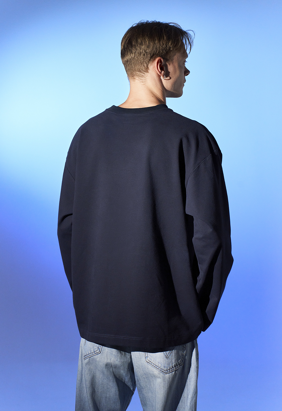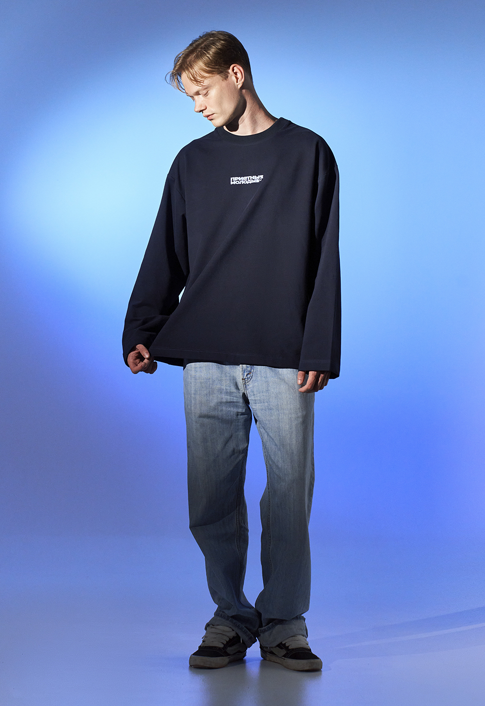 Темно-синий лонгслив от Приятного Ильдара "Приятные Молодые" oversize кроя выполнен из высококачественного плотного хлопка плотностью 240 гр/м2 .