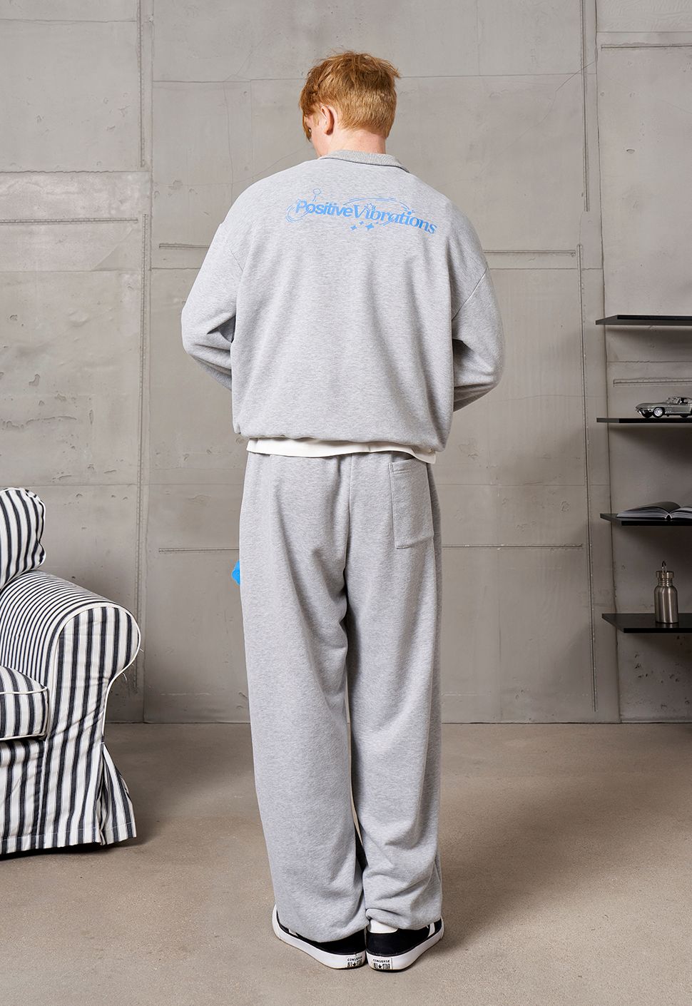 Брюки "Positive Vibrations" серый меланж выполнены из высококачественного хлопка с полиэстером и велюр-эффектом . Плотная резинка по поясу и низу штанины. Два кармана спереди, накладной карман сзади, жаккардовая бирка.