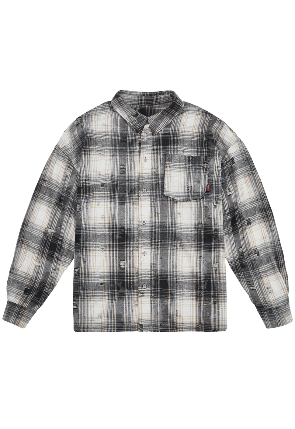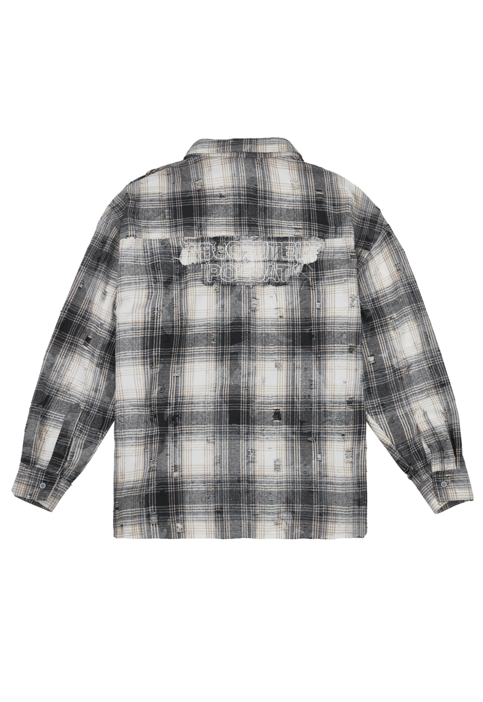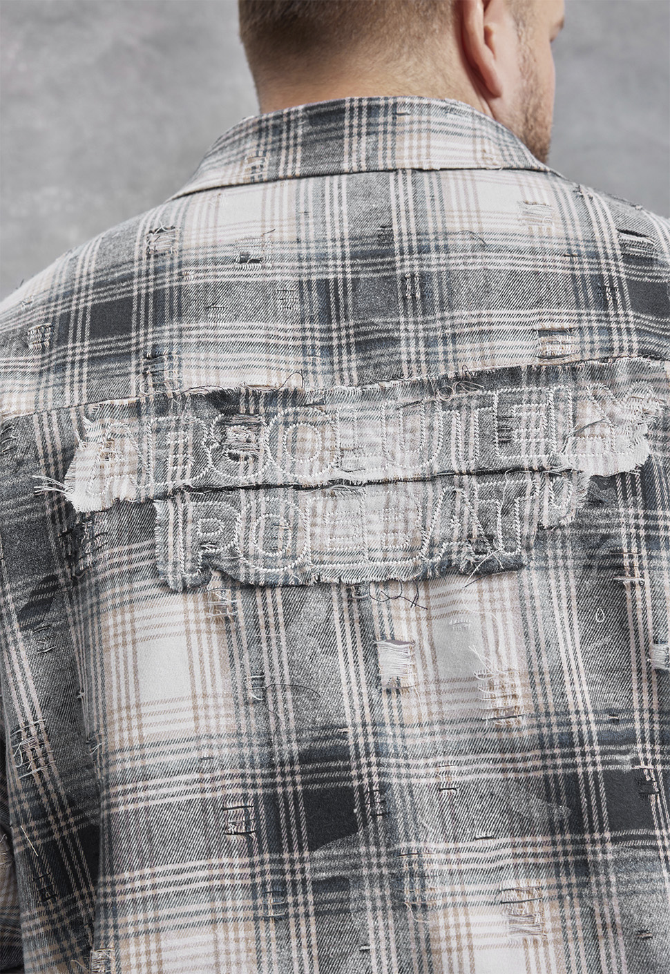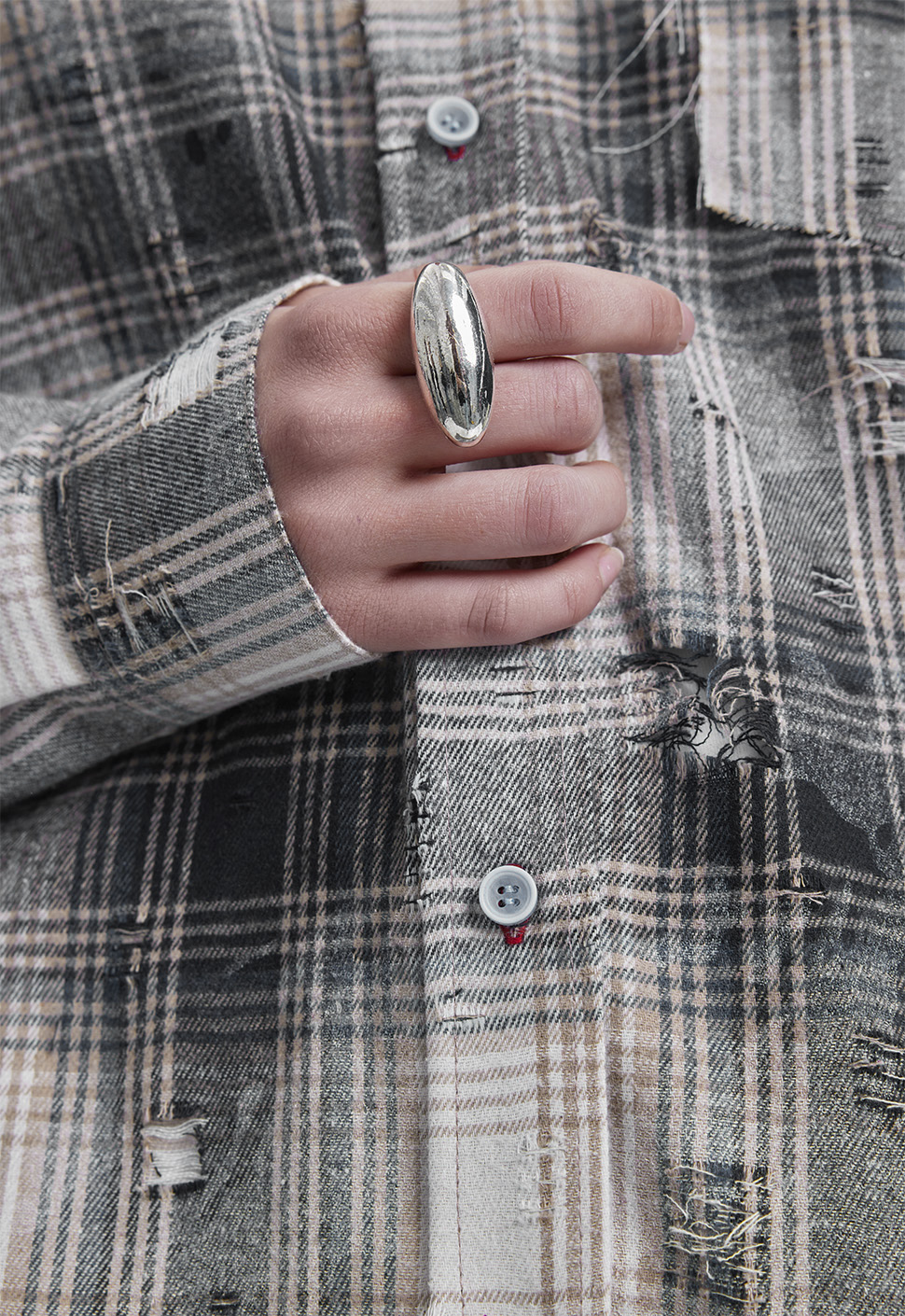 Молочно-синяя рубашка от Приятного Ильдара "Absolutely Po*bat" oversize кроя выполнена из высококачественного 100% хлопка. На передней части изделия расположен карман с фирменной жаккардовой биркой, также на изделии присутствуют контрастные петли, которые делают изделие более акцентным и интересным. Нанесение на спинке изделия сделано машинной вышивкой. Материал рубашки оформлен в стиле гранж — изделие дополнено множеством декоративных порезов и потёртостей.
