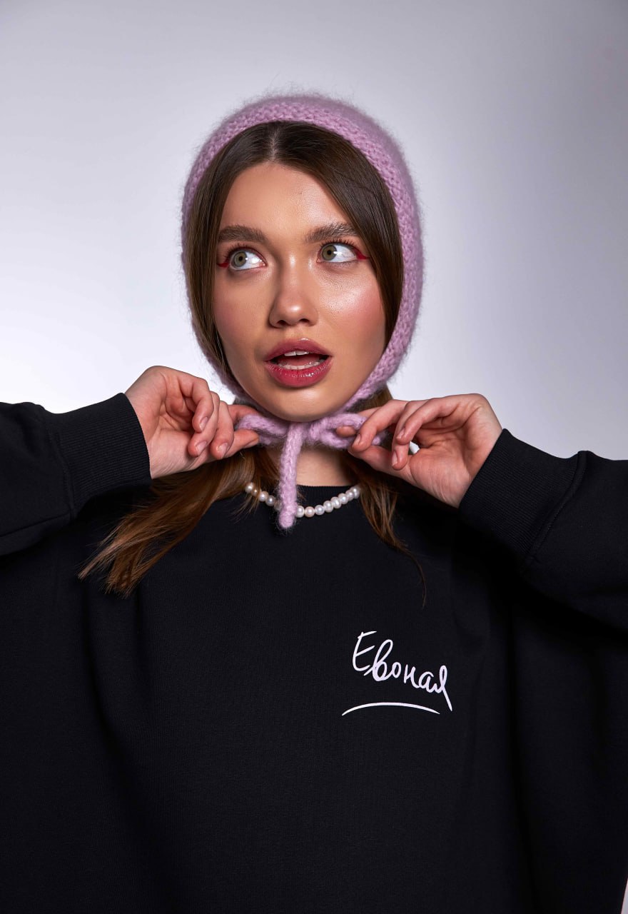 Свитшот от Приятного Ильдара "Евоная" в черном цвете выполнен из высококачественного хлопка плотностью 320 гр/м2. Модель имеет круглый ворот и Oversize посадку. Принт на груди и спине нанесен шелкографией.