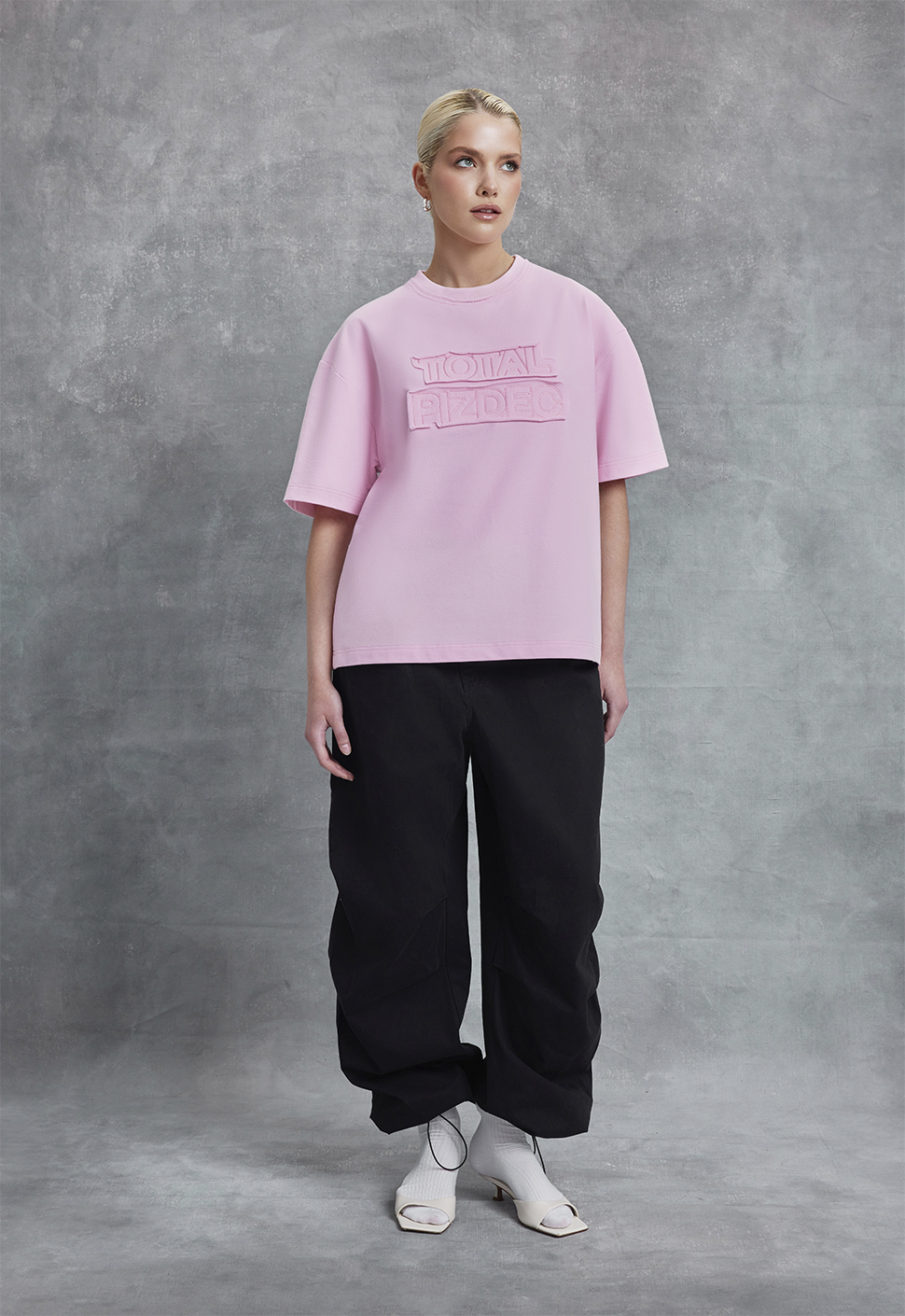 Розовая футболка от Приятного Ильдара "Total pi*dec" oversize кроя выполнена из высококачественного плотного хлопка плотностью 240 гр/м2.