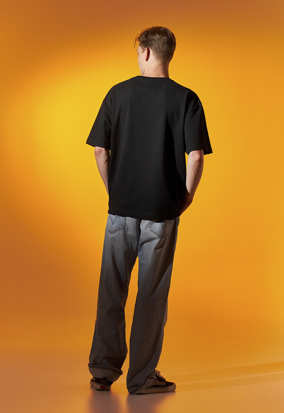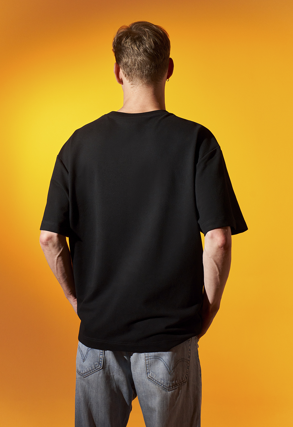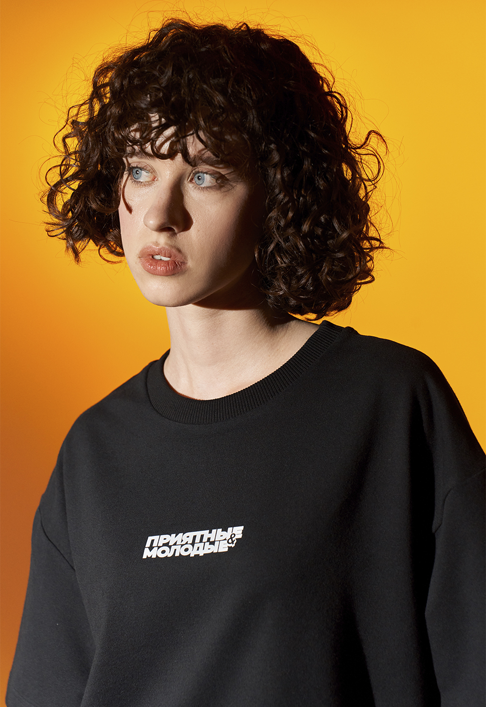 Черная футболка от Приятного Ильдара "Приятные молодые" oversize кроя выполнена из высококачественного плотного хлопка плотностью 240 гр/м2.