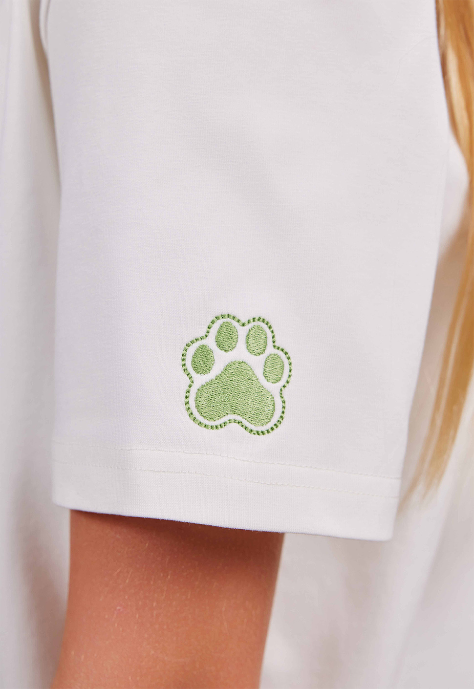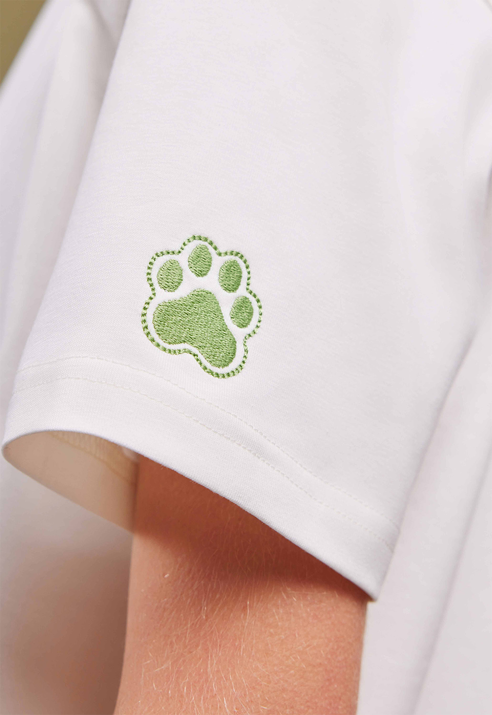 Футболка унисекс "Юги" от А ну-ка давай-ка в молочном цвете выполнена из высококачественного хлопка плотностью 200 гр/м2. Модель имеет круглый ворот, прямой крой и oversize посадку. Принт на груди нанесен методом DTF, на левом рукаве логотип выполнен машинной вышивкой.